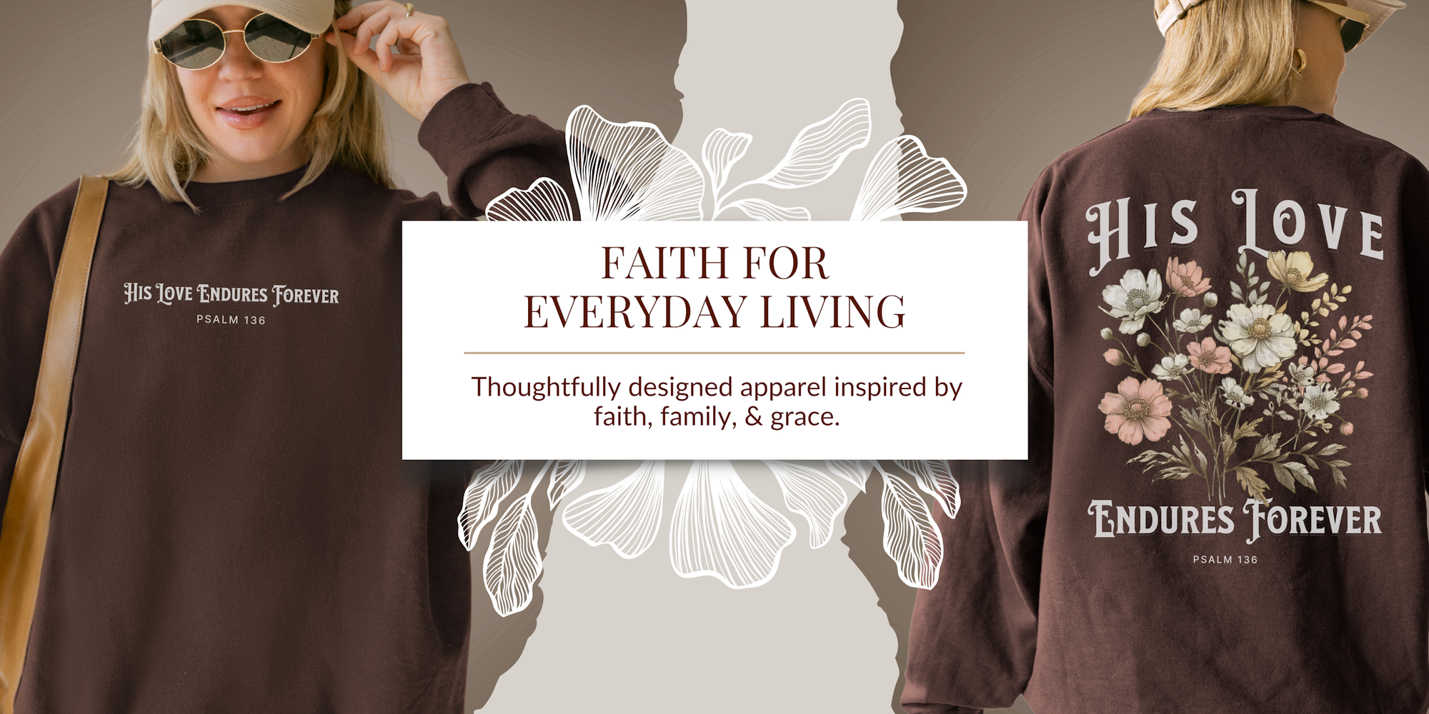 At Faith, Fur & Grace, we believe faith and everyday life go hand in hand—sometimes muddy-pawed and full of grace. Inspired by the beauty of small moments, loyal companions, and the Good News, we create apparel that feels as authentic as a front porch conversation. Our mission is to encourage hearts, spark smiles, and help fellow believers wear their faith with warmth, joy, and a touch of country charm.